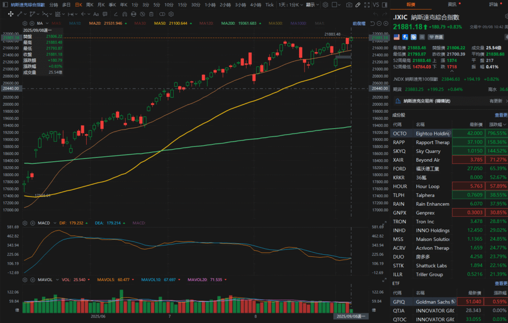 1 – 納指升0.8%至21881點,NVDA升1.8%至170元。